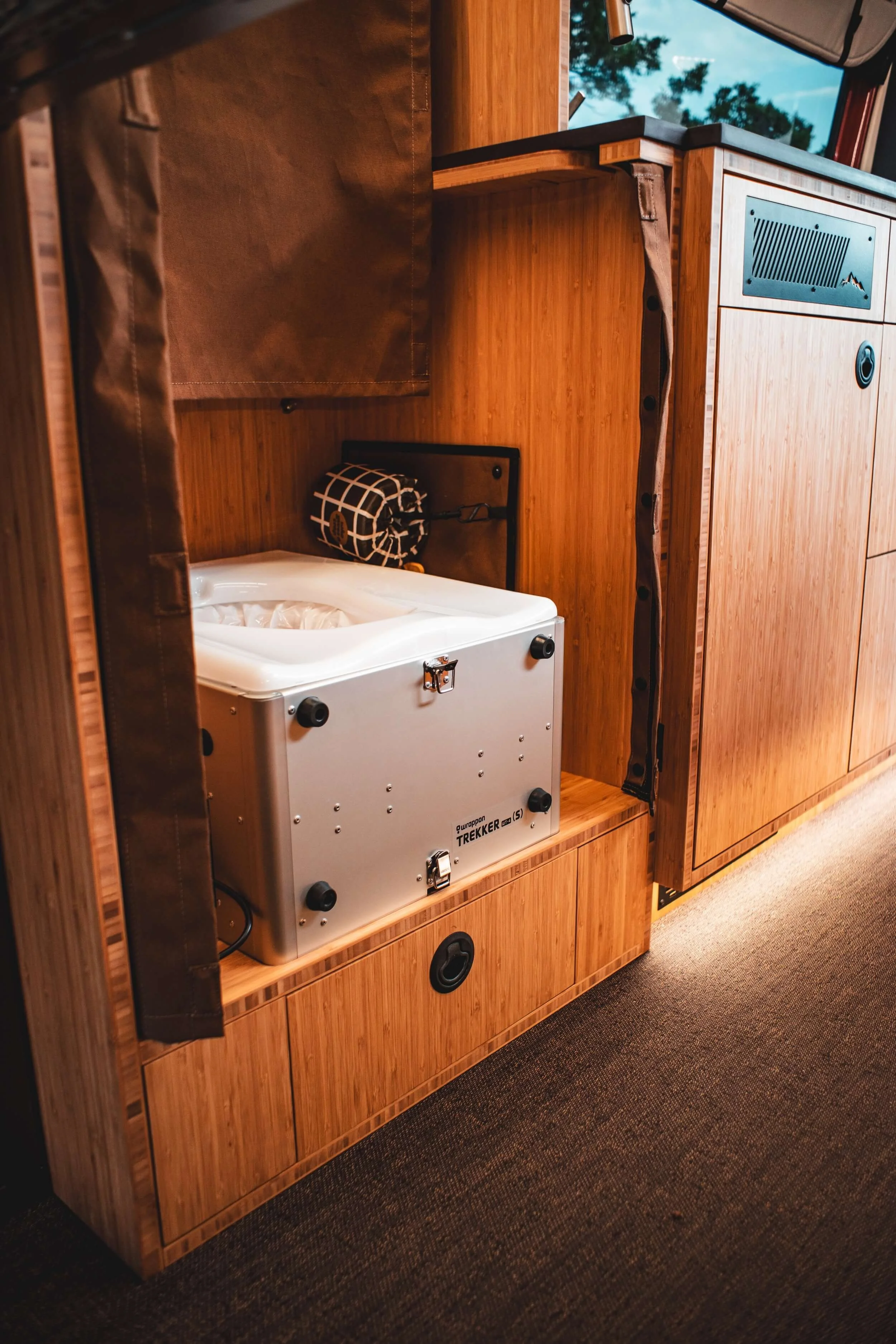 _Wrappon Toilet with Custom Platform and Privacy Curtain